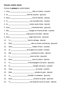 Ils sont suivis d'un verbe à l'infinitif. Hinter dem verb pouvoir steht sofort ein anderes verb im infinitiv. Il/elle veut, il/elle peut, il/elle doit. Aujourd'hui, un exercice de mémorisation des verbes « devoir, savoir, vouloir et pouvoir » . Les verbes pouvoir, vouloir, devoir, valoir, paraître.